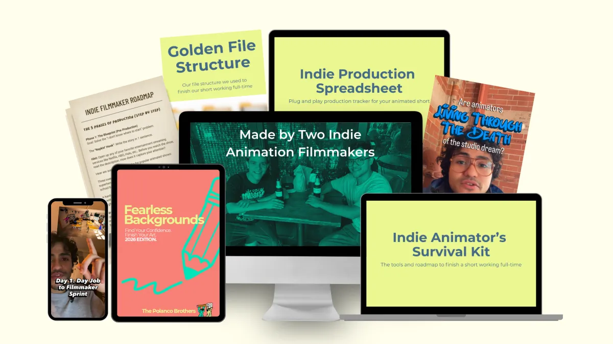 Steal the exact indie animation pipeline we used to finish our short film when we had every reason to quit. Exhaustion is real, but the tools inside this kit kept us moving forward. Whether you have an abandoned project on your hard drive or just a rough idea in your head, this survival kit gives you the roadmap to the finish line. It works even if you don't have expensive tools/software or a fully figured out story.